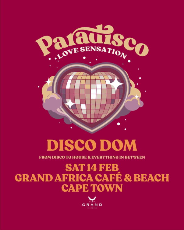 Cape Town… Paradisco Love Sensation returns this Valentine’s Day! Get ready for a full-on beach party at Grand Africa Café & Beach from 4PM to 2AM, featuring a celebration of love, music, and dance. DISCO DOM headlines, bringing disco, house, and everything in between to steal hearts and move feet.