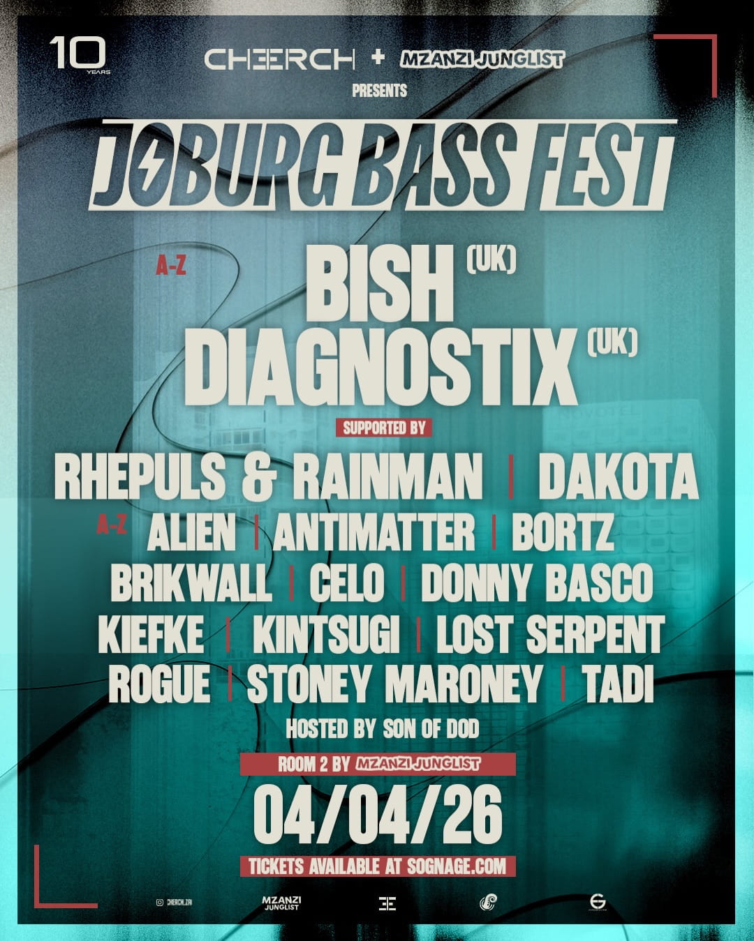 Johannesburg… This Easter weekend, bass music takes over the city as JOBURG BASS FEST ft. BISH + DIAGNOSTIX lands at Sognage for a full day drum and bass experience. Powered by CHERCH in collaboration with Mzanzi Junglist, this high energy event brings together international headliners and local bass culture for one of the most exciting drum and bass events in Johannesburg.